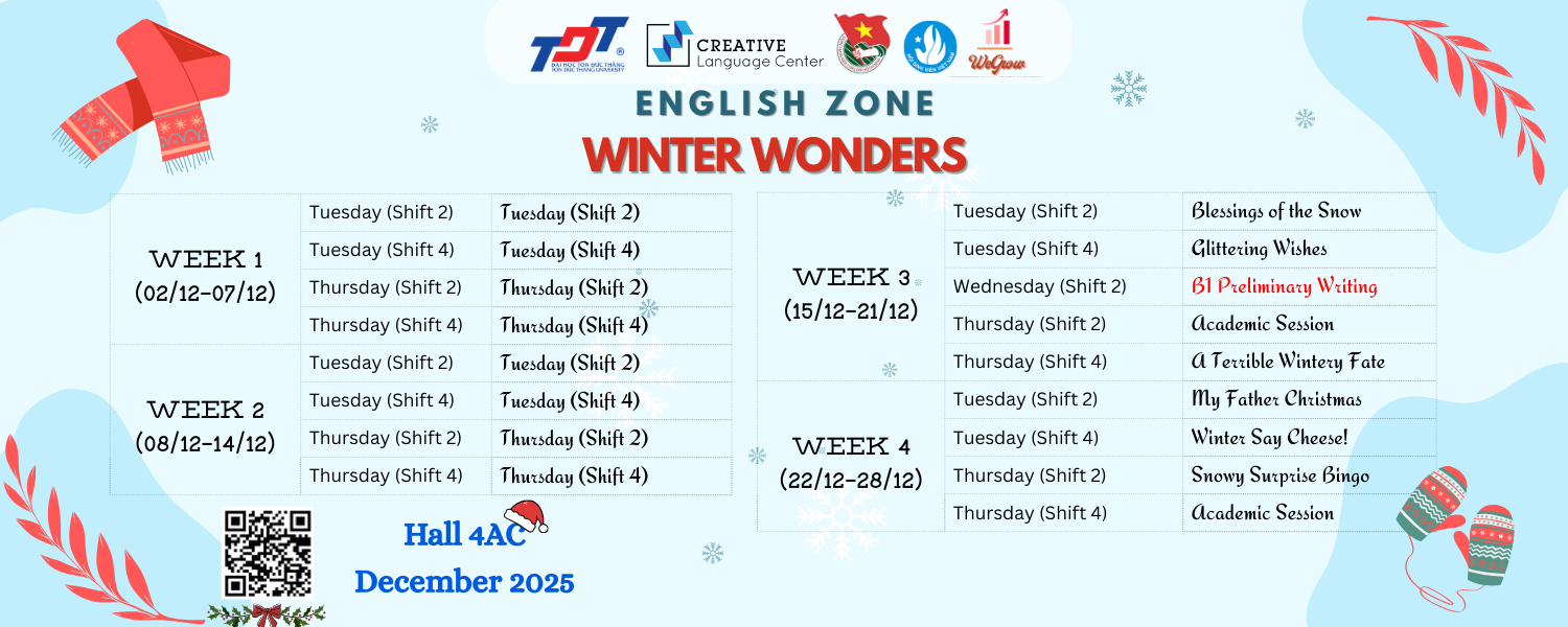 Homepage TDTU NEWS Series of Activities to Celebrate the 43rd Anniversary of Vietnamese Teachers’ Day (November 20, 1982 - November 20, 2025) at Ton Duc Thang University CLC | 25 Nov 25 Heartwarming and Meaningful Activities Celebrating Vietnamese Women’s Day at Ton Duc Thang University CLC | 22 Oct 25 Return-to-roots trip to Con Dao: A Journey of Gratitude by the core staff of Ton Duc Thang University CLC | 26 Jul 25 Read more >> TDT CLC News Workshop “From AI to Insight: Evolving English Teaching” – Exploring AI applications in English language education CLC | 27 Nov 25 English Zone “Flowerful Thanks” CLC | 20 Nov 25 Announcement on Recruiting Full-Time Foreign Lecturers CLC | 20 Oct 25 Read more >> Extracurricular Activities English Zone “Flowerful Thanks” CLC | 20 Nov 25 Funky Friday "Sweet or Squid?" CLC | 31 Oct 25 English Zone special event “Back to school, Back to cool!” CLC | 10 Oct 25 Read more >>